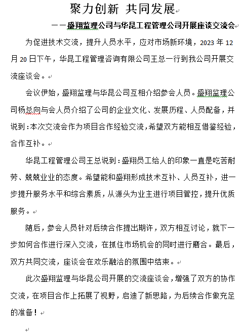 聚力創(chuàng)新 共同發(fā)展 ——盛翔監(jiān)理公司與華昆工程管理公司開展座談交流會