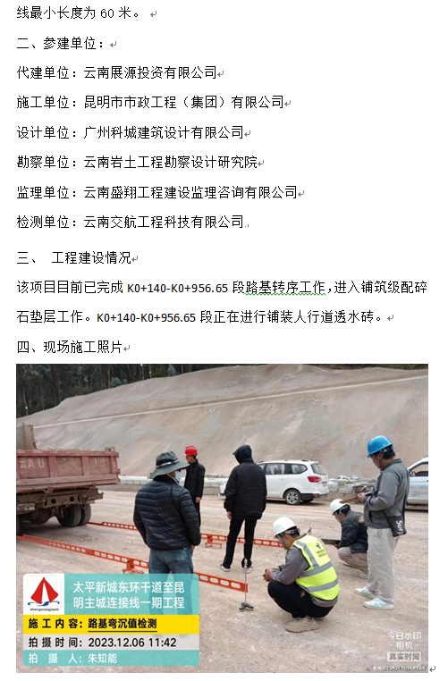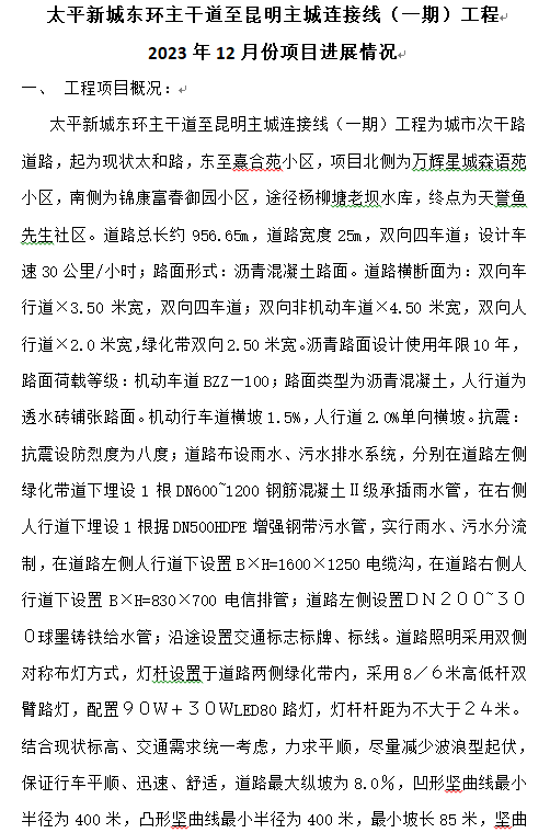 太平新城東環(huán)主干道至昆明主城連接線(一期)工程 2023年12月份項(xiàng)目進(jìn)展情況