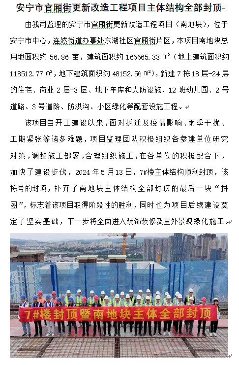 安寧市官廂街更新改造工程項目主體結(jié)構(gòu)全部封頂