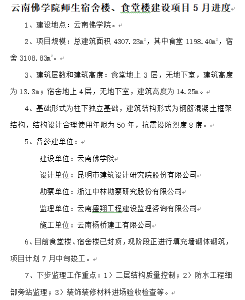云南佛學(xué)院師生宿舍樓、食堂樓建設(shè)項(xiàng)目5月進(jìn)度