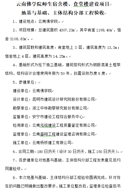 云南佛學(xué)院師生宿舍樓、食堂樓建設(shè)項目 地基與基礎(chǔ)、主體結(jié)構(gòu)分部工程驗收