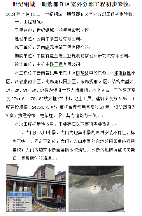 世紀(jì)銅城一期紫郡B區(qū)室外分部工程初步驗收