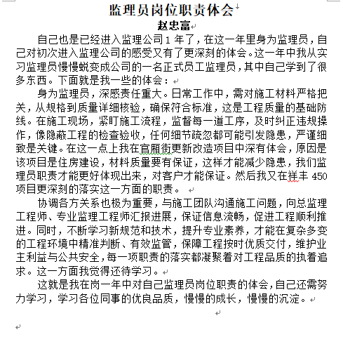 監(jiān)理員崗位職責(zé)體會——趙忠富