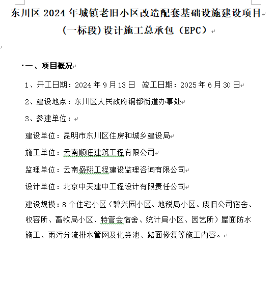 東川區(qū)2024年城鎮(zhèn)老舊小區(qū)改造配套基礎設施建設項目 (一標段)設計施工總承包(EPC)