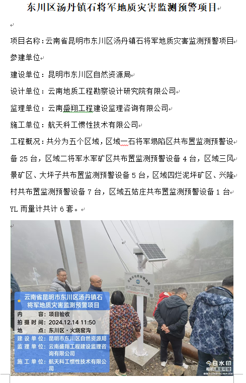 東川區(qū)湯丹鎮(zhèn)石將軍地質(zhì)災(zāi)害監(jiān)測預(yù)警項目