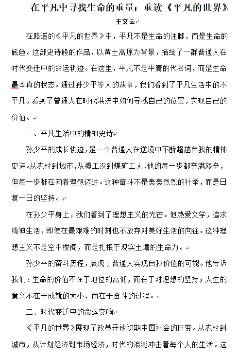 在平凡中尋找生命的重量:重讀《平凡的世界》——王文云