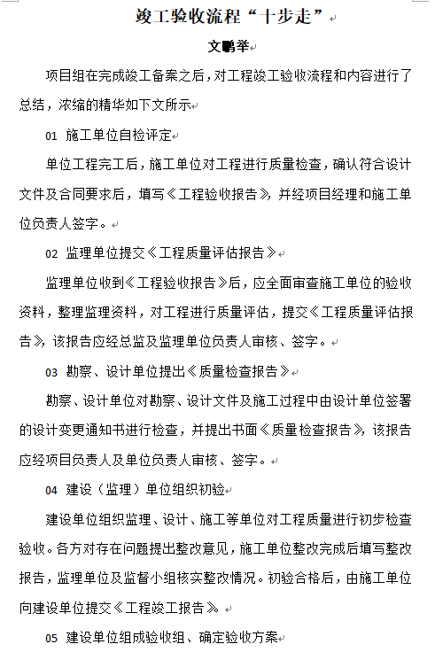 竣工驗(yàn)收流程“十步走”——文鵬舉