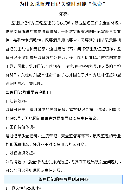 為什么說監(jiān)理日記關(guān)鍵時(shí)刻能“保命” 汪亮