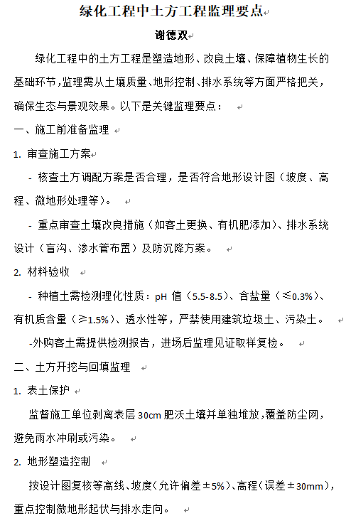 綠化工程中土方工程監(jiān)理要點(diǎn) 謝德雙