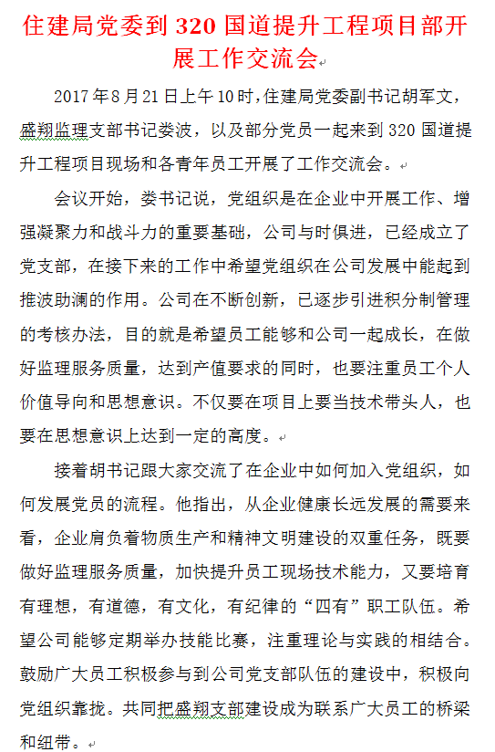 住建局黨委到320國道提升工程項(xiàng)目部開展工作交流會(huì)