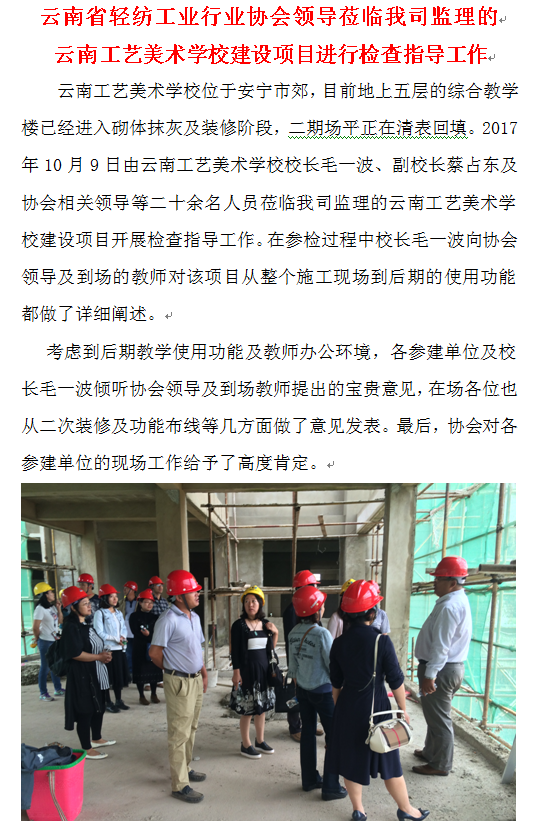 云南省輕紡工業(yè)行業(yè)協(xié)會(huì)領(lǐng)導(dǎo)蒞臨我司監(jiān)理的云南工藝美術(shù)學(xué)校建設(shè)項(xiàng)目進(jìn)行檢查指導(dǎo)工作