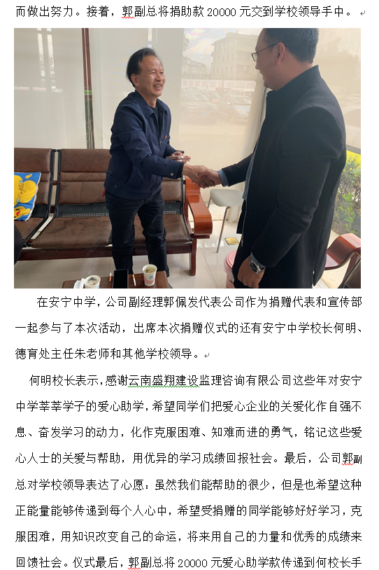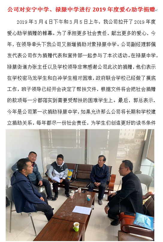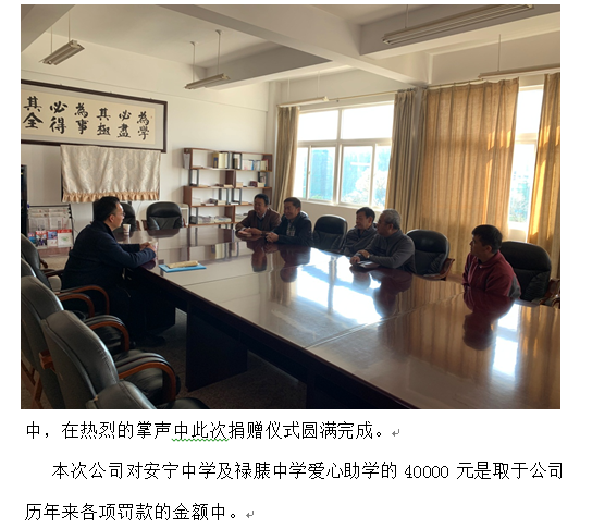 公司對(duì)安寧中學(xué)、祿脿中學(xué)進(jìn)行2019年度愛心助學(xué)捐贈(zèng)