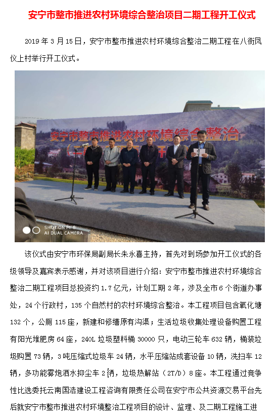 安寧市整市推進(jìn)農(nóng)村環(huán)境綜合整治項(xiàng)目二期工程開(kāi)工儀式
